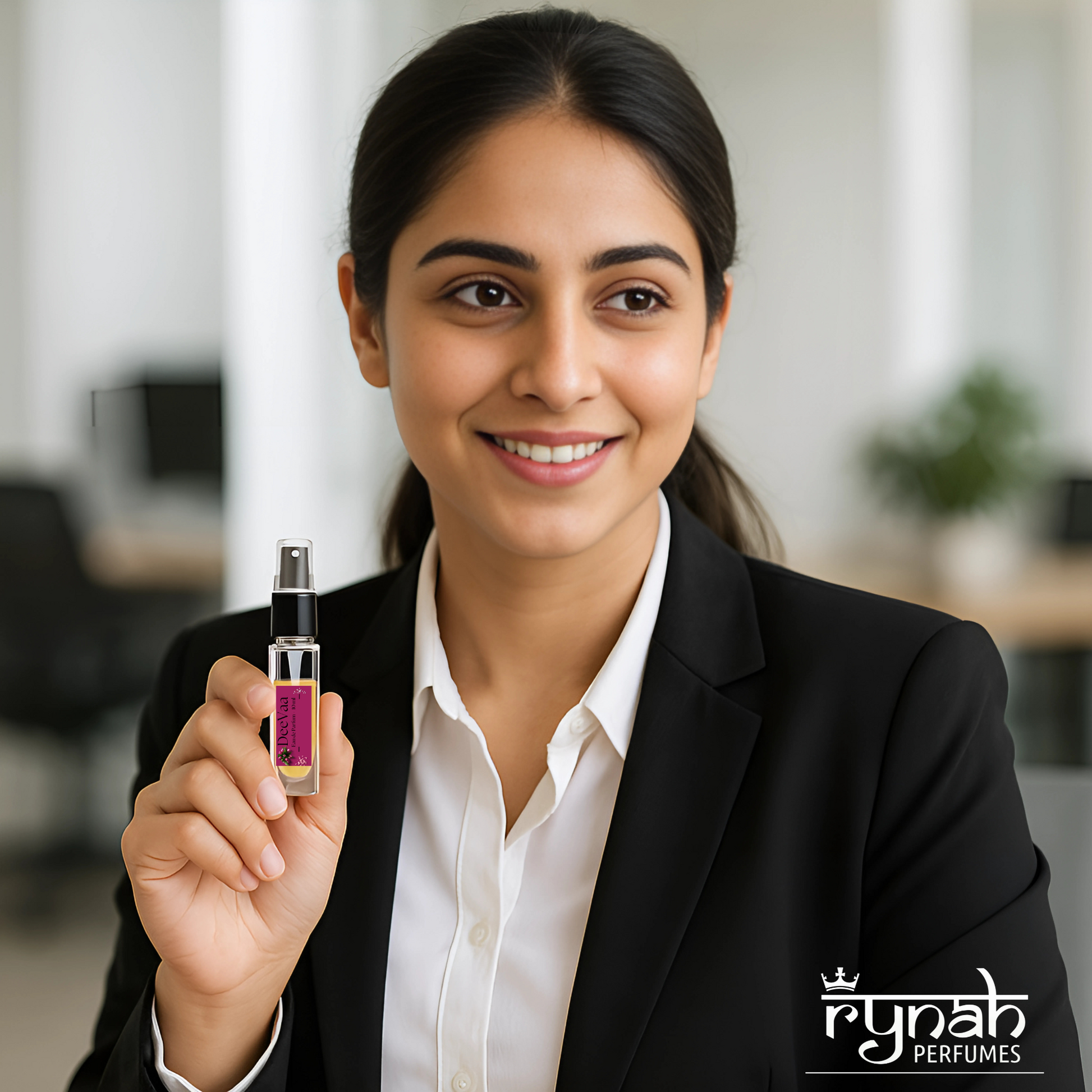 DeeVaa – A sophisticated floral-woody-musk fragrance, opening with tuberose, ylang-ylang, and violet leaf, enriched with jasmine, peach, and plum, and settled on a sensual base of sandalwood, vanilla, musk, amber, and vetiver.