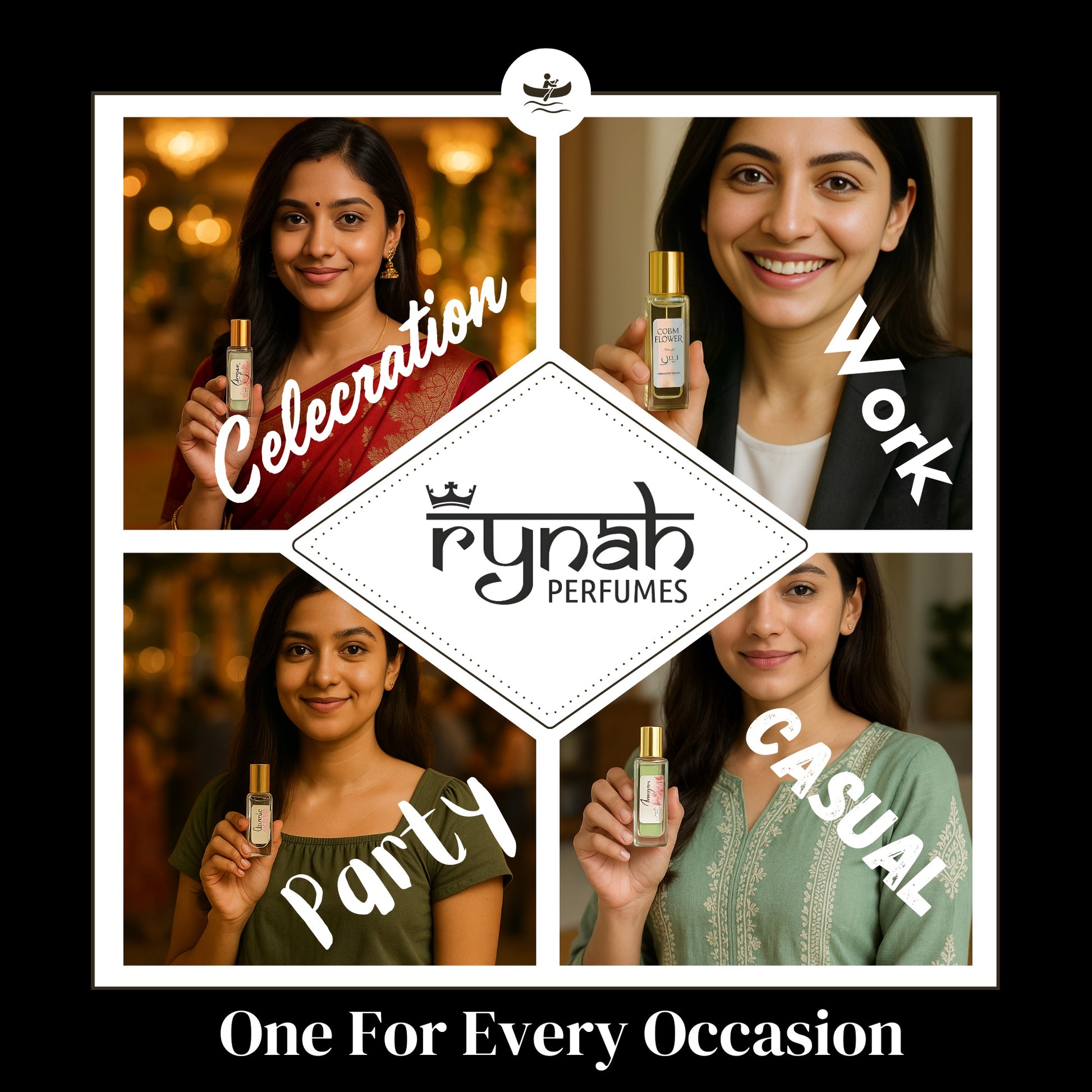 This 4-in-1 women’s perfume gift set combines variety, luxury, and long-lasting quality, making it one of the best perfume gift sets for women in India. Recognized among the top emerging perfume brands, Rynah Perfumes offers a premium fragrance experience at an affordable price.