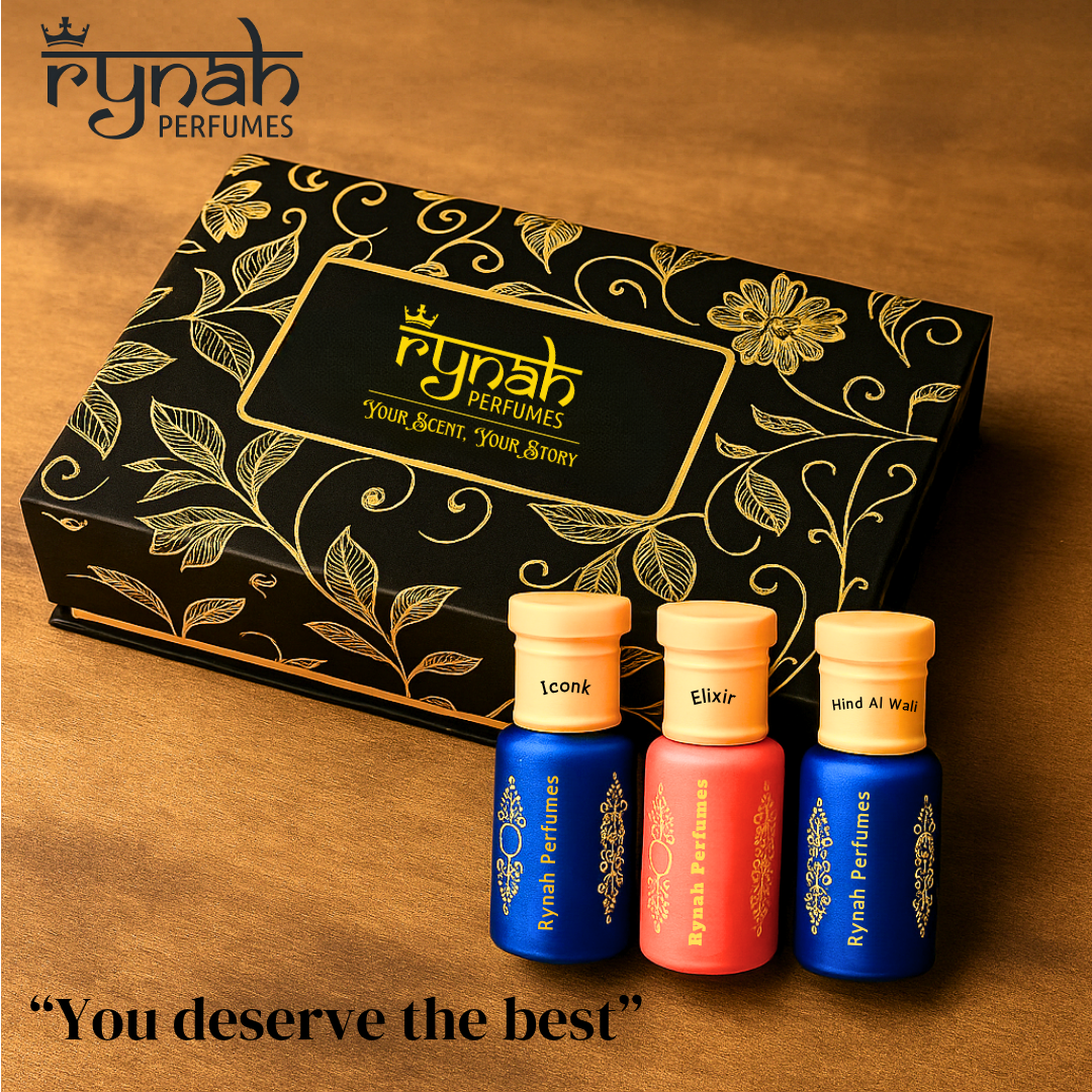 This 3-in-1 luxury set is designed for the modern gentleman, making it an ideal choice for weddings, festive celebrations, parties, and premium gifting. Recognized among the top emerging attar brands in India, Rynah Perfumes blends Arabic heritage with modern elegance in every drop.