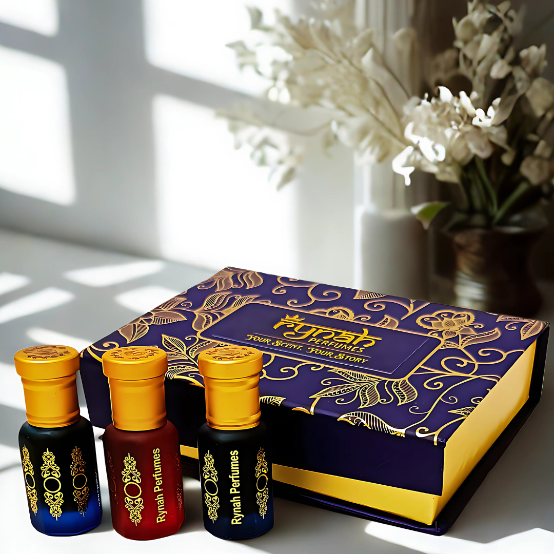 This 3-in-1 set combines luxury, elegance, and tradition, making it an ideal choice for women who appreciate premium attars with lasting beauty. Recognized among the top emerging attar brands in India, Rynah Perfumes ensures every drop reflects sophistication and modern charm.